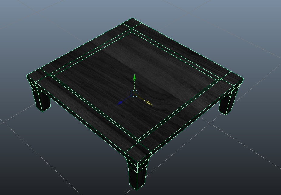 The much smaller shapes in the UV table are the table legs and the sides, which I mapped side by side, to get every little detail in ready for texturing. This was done by Planar Mapping too